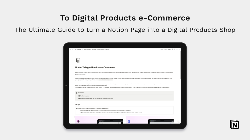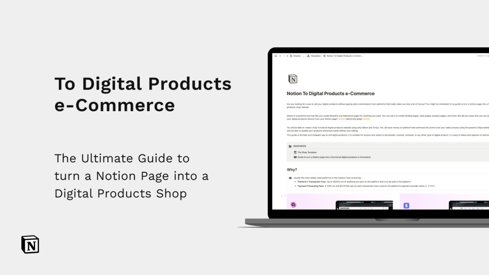 Are you tired of losing a significant portion of your earnings to sales commissions on platforms? Discover a game-changing solution with our "Notion to Digital Products e-Commerce" guide. This comprehensive guide empowers you to leverage the capabilities of Notion and Stripe to create a functional digital products shop directly from your Notion page.